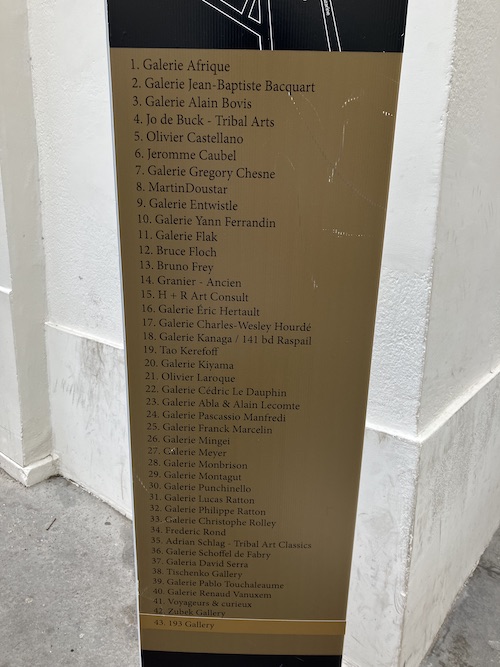 個人で行く時はあれこれ下調べしていくのですが、今回はどのように動けるのかわからず(パリでは2日間自由に動けました)特になんの準備もせずに行ったので何があるのかわかりませんでしたが、ギャラリーの集まる一角が”Paris Tribal“というイベントを開催中で古代のアフリカやアジア、オセアニア、アメリカ大陸の民族の美術品が展示しておりとても見応えのある企画と感じました。それぞれの民族が儀式の際に用いる仮面や像など、日本からは能面などが展示されていました。